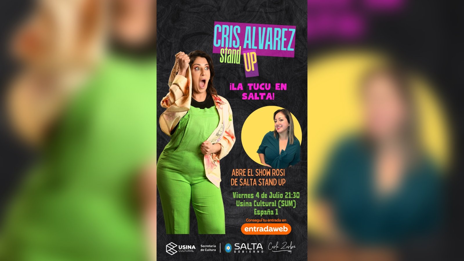 Las entradas están disponibles a través de redes sociales de Cris Stand Up y en la Usina Cultural de Salta, donde también puede consultarse la disponibilidad de promociones vigentes.