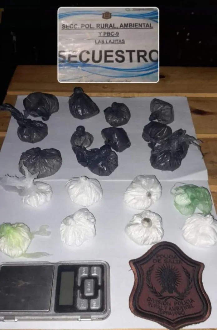 El pasado mes de junio, durante un control vehicular que realizaba personal de la Policía Rural en un camino vecinal de Apolinario Saravia, se detuvo en flagrancia a un hombre que circulaba en motocicleta, y que transportaba ocultos dos recipientes, donde transportaba envoltorios con cocaína o sus derivados, junto a otros elementos de interés.