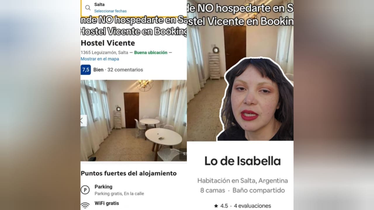 Silva realizó su reserva a través de la plataforma Booking en el Hostel Vicente, ubicado en Leguizamón 1365, pero al llegar se encontró con un panorama muy distinto al prometido: camas y sábanas sucias, espacios descuidados, olores desagradables y sin servicio de internet, condición indispensable para ella ya que trabaja de manera remota.
