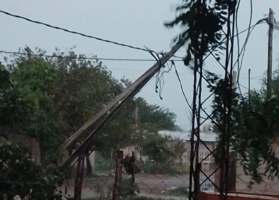 Según relataron vecinos de la zona, el viento del sector norte sopló con intensidad inusual y fue descrito como huracanado. Las ráfagas provocaron la voladura de chapas, la caída de árboles y dejaron varios postes del tendido eléctrico en situación de riesgo, sostenidos únicamente por los cables. Como consecuencia, el servicio de energía eléctrica se interrumpió en el momento más crítico del temporal.