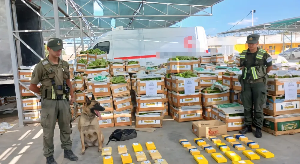 El operativo comenzó el sábado pasado en el estacionamiento de una feria de la zona, luego de que efectivos del Escuadrón 66 “San Juan” fueran alertados sobre la posible presencia de paquetes sospechosos. Al arribar al lugar, los gendarmes detectaron un camión estacionado con carga de bananas a granel y procedieron a inspeccionarlo.