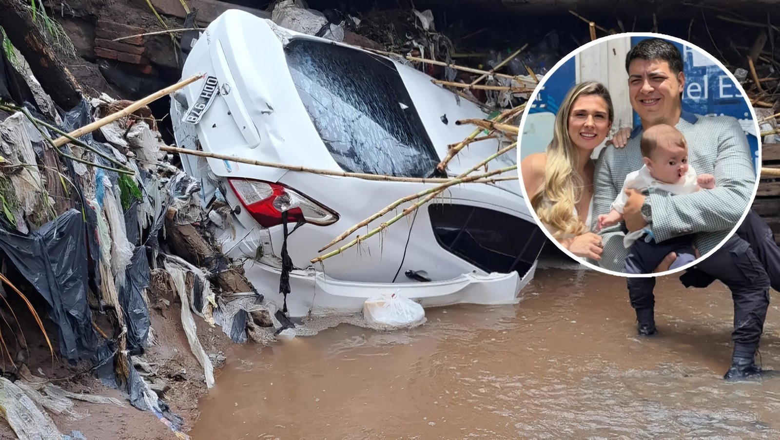 Según los primeros informes policiales que fueron publicados en X, el Nissan Versa blanco en el que se movilizaban fue arrastrado por la fuerte corriente de agua cuando intentaban regresar de una fiesta de casamiento. El vehículo quedó atrapado en un canal de desagüe, cubierto por una gran cantidad de lodo y ramas, lo que impidió su visualización inmediata.